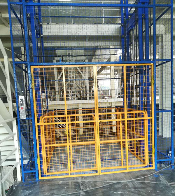 帶外防護導(dǎo)軌式液壓升降機在涂料廠安裝完成